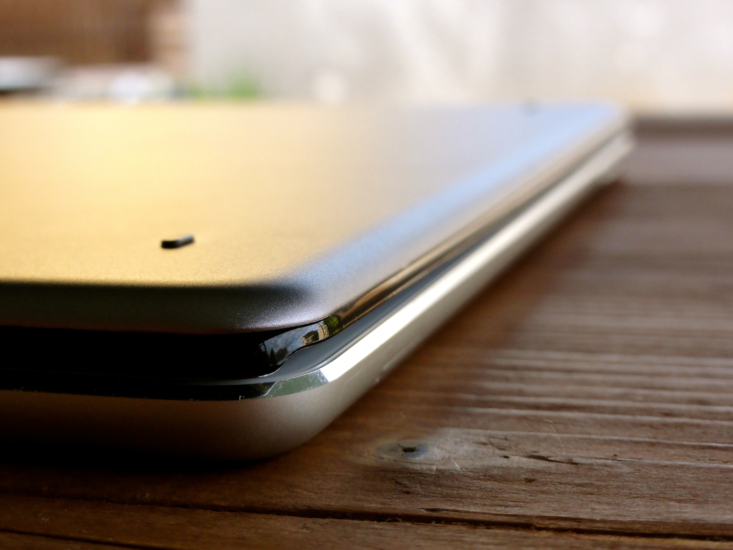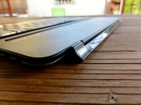 Záda klávesnice jsou z hliníku. Obsahují gumové výstupky, aby vám při psaní po stole necestovala. Hliník je velice odolný a příjemný na dotek. Oproti top modelu clip-on je tato klávesnice těžší jen o zcela zanedbatelných osm gramů a hlubší o 0,9 mm. Výšky jsou shodné. Co se však týče šířky, zde máte o téměř čtyři milimetry méně materiálu. Oproti vnějšímu hliníkovému povrchu je ten vnitřní opět plastový. Ne, že by to něčemu vadilo – lesklé provedení budí luxusní dojem a otisky prstů příliš neulpívají.