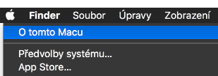 • Klikněte na logo Applu v horním řádku nabídky a zvolte z nabídky O tomto Macu.