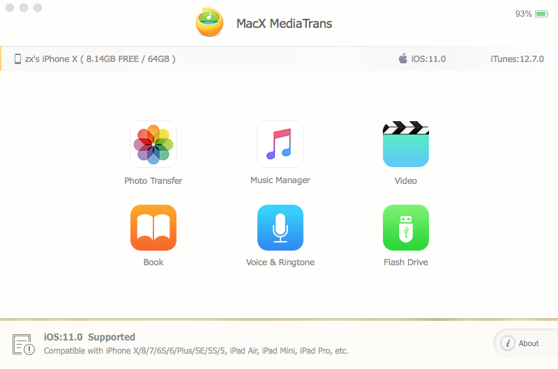 Aplikace slouží k přesouvání jednotlivých typů souborů z vašeho iOS zařízení. Jednoduše tak z vašeho iPhonu dostanete fotografie, hudbu, videa nebo audioknihy. Zajímavou a pro někoho potřebnou funkcí, je také režim flash disku. Díky tomu bude váš iPhone nebo iPad sloužit jako USB úložiště a můžete do něj vložit jakýkoliv typ souboru. Podmínkou pro zobrazení takto uložených souborů, je mít nainstalovaný MacX MediaTrans.