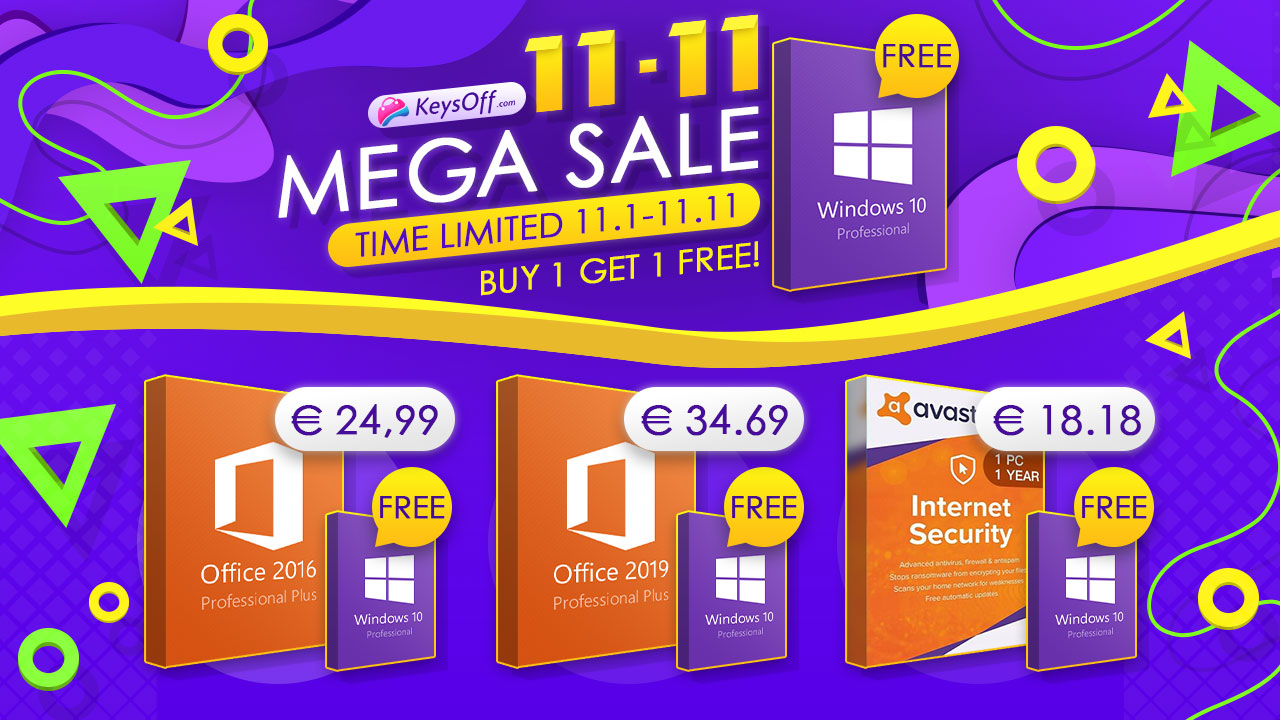 Velkolepý výprodej, který dá pořádně odpočinout vaší peněžence, je tu. Oznámení 11–11 Mega výprodeje od společnosti KeysOff.com, kde získáte nejen obrovské slevy, ale také jedinečnou nabídku 1+1. Je to vaše nejlepší šance získat Windows 10 zcela zdarma. Doporučujeme provést nákup co nejdříve.
