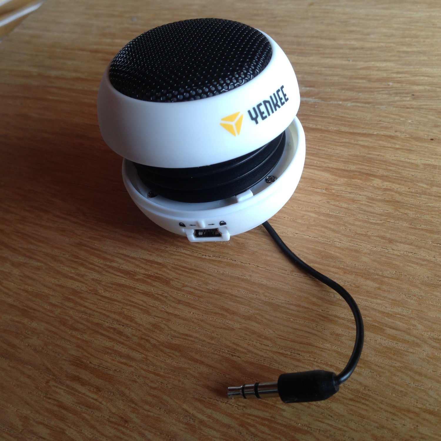 Jedná se opravdu o pidi reproduktor (5 x 5 x 3,5 cm), který se snadno vleze do každé kabelky, batohu, nebo i kapsy u kalhot. A díky šikovné drážce na uložení kablíku z reproduktoru ani nic ohavně nekouká a nepřečuhuje.