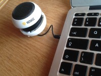 A zvuk je přece to, oč tu běží, že. Je až neuvěřitelné, co tento diblík s minimalistickými rozměry dokáže. Na boku samotného reproduktoru se nachází jezdec pro ovládání hlasitosti se třemi polohami – vypnuto, nižší hlasitost, vyšší hlasitost. Z toho plyne, že hlasitost je jednodušší ovládat ze zařízení, ze kterého se pouští hudba (už jenom proto, že s jezdcem se docela špatně manipuluje).