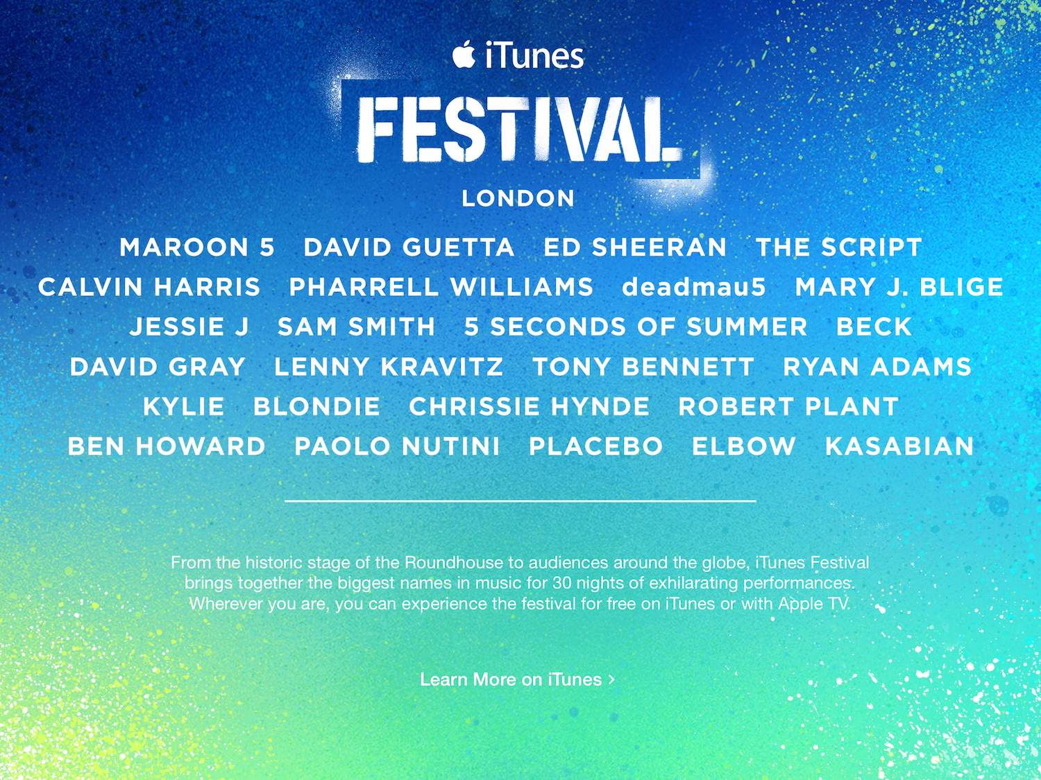Mimo jiné byla aktualizována iOS aplikace iTunes Festival, která dostala nový vzhled a byl doplněn letošní lineup. Pokud se chcete dozvědět více, stačí navštívit speciální stránku věnovanou iTunes Festivalu 2014.