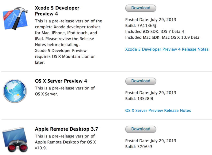 Štítky: Apple TV OS 5.4iOS 7 beta 4OS X 10.8.5OS X Server 4Remote Desktop 3.7Xcode 5