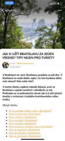 K tomu ostatně slouží první záložka titulu, která se jmenuje příznačně Články. Pokud je ten daný pro vás zajímavý, ale nemáte na něho zrovna čas, nemusíte se bát, že vám uteče. Po jeho rozkliknutí a volbě tří teček vpravo nahoře si jej totiž lze uložit i pro off-line čtení v letadle nebo kdekoli, kde nemáte mobilní internet. Nebo třeba pokud si článek chcete přelouskat až na cestách a nechcete si přitom čerpat data.