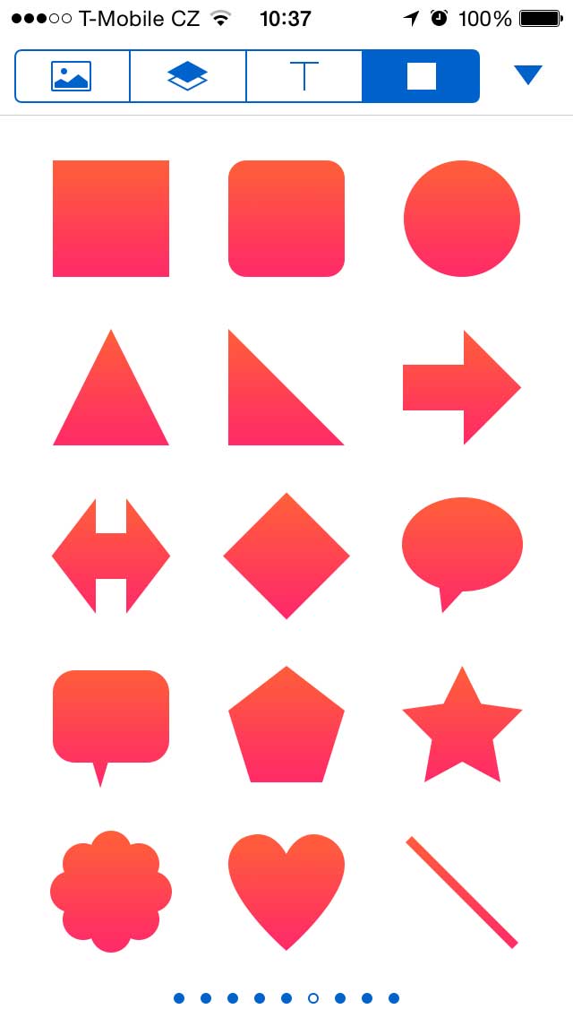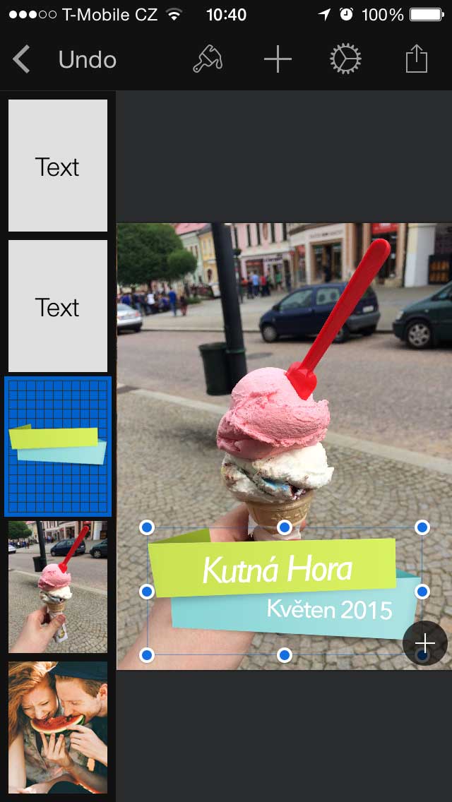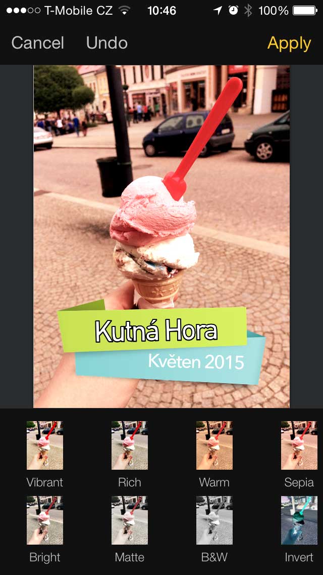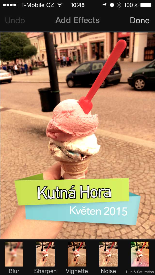 Další skvělou vlastností Pixelmatoru je tuna efektů. U textu můžete měnit velikost, font, přidat stín nebo zvýraznění. Do fotky zase přidáte různé tvary v různých barvách. Úprava barev je v podstatě podobná aplikacím Snapseed, VSCO nebo Mextures. Fotografii lze zesvětlit nebo ztmavit.