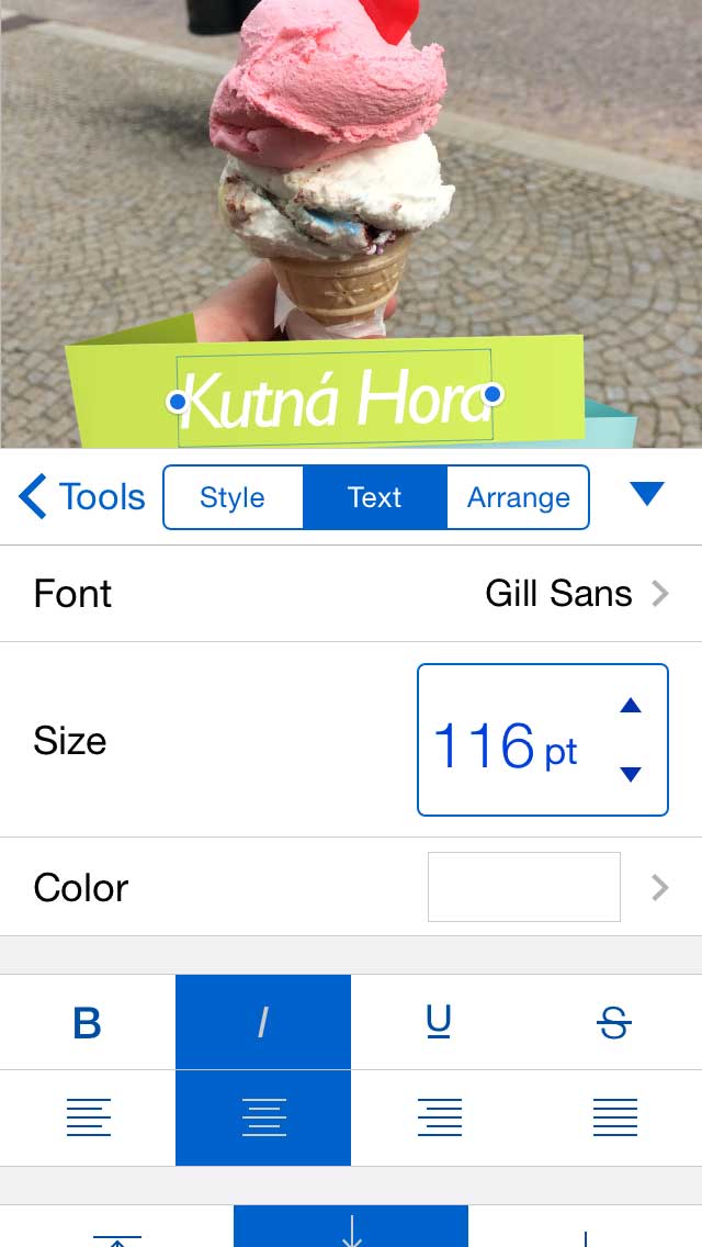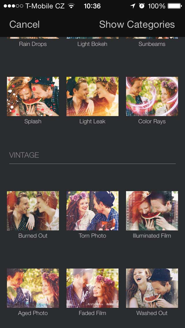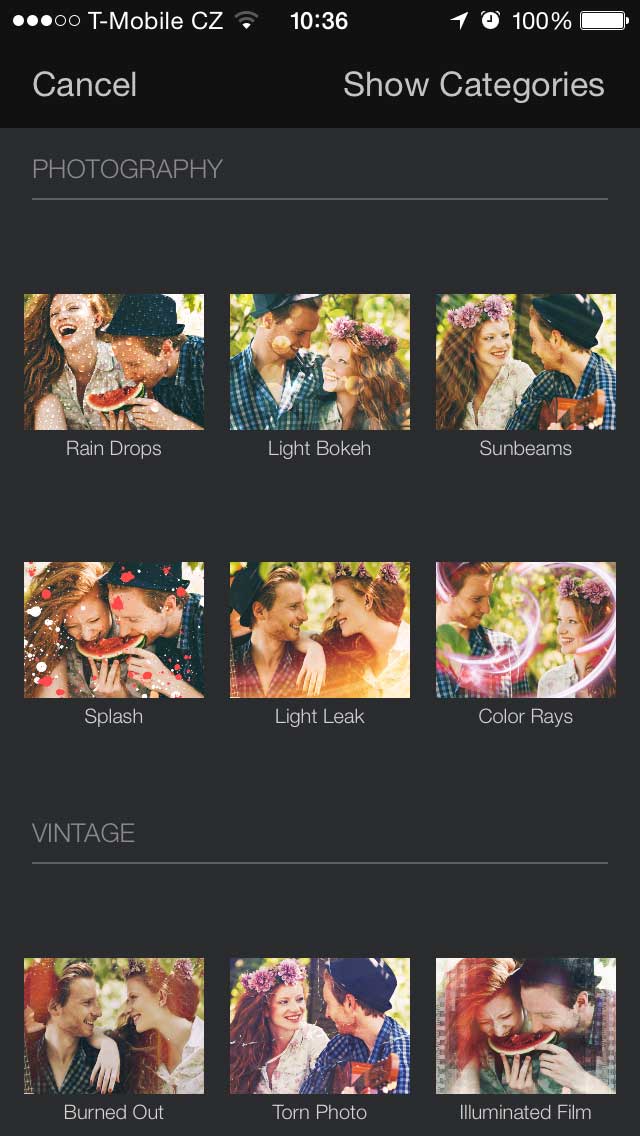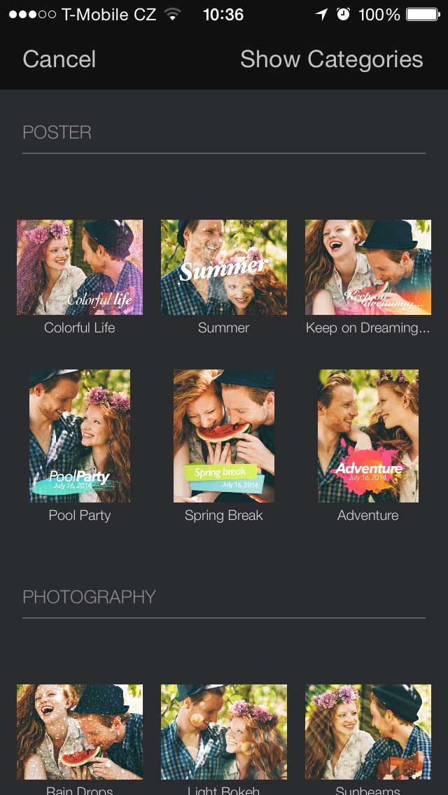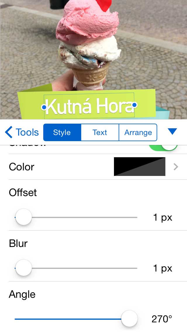 Další skvělou vlastností Pixelmatoru je tuna efektů. U textu můžete měnit velikost, font, přidat stín nebo zvýraznění. Do fotky zase přidáte různé tvary v různých barvách. Úprava barev je v podstatě podobná aplikacím Snapseed, VSCO nebo Mextures. Fotografii lze zesvětlit nebo ztmavit.