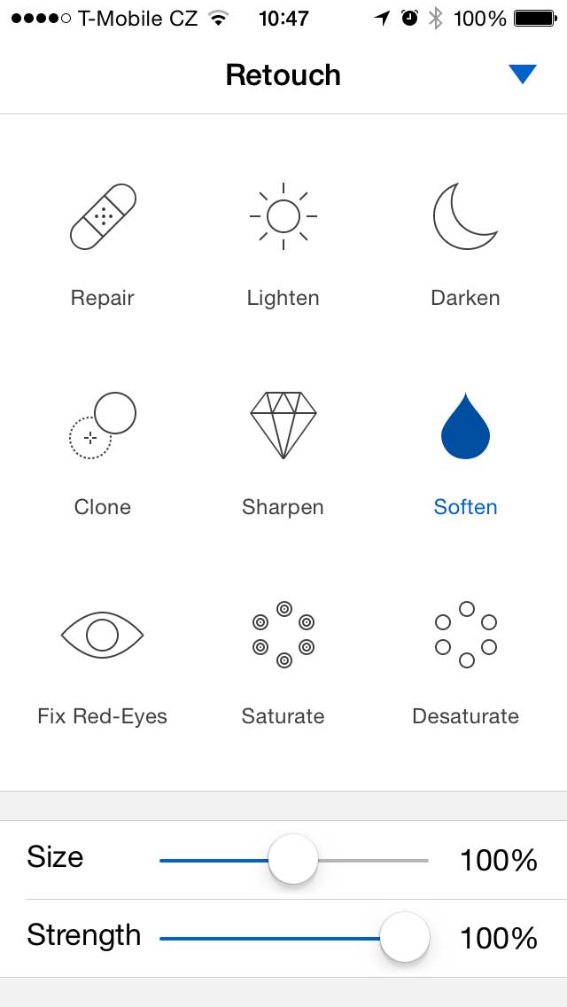 Je zde i možnost retuše, úprava ostrosti, saturace, redukce červených očí, světla a rozmazání. S nástrojem retuše lze z obrázku vymazat nežádoucí objekty. Stačí prstem objekt zamazat a o zbytek se postará algoritmus. Dále pak využijete nástroj plnohodnotného malování. Pixelmator může tedy nahradit různé kreslící programy, jako je například SketchBook.