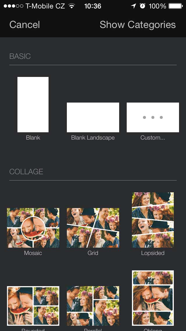 Po prvním spuštění si můžete vybrat, zdali chcete začínat na prázdném podkladu nebo si vyberete nějaký rámeček, případně přednastavenou šablonu. Je zde i možnost vytvoření koláže. Prostředí a ovládací panely jsou podobné aplikaci Keynote od Applu. V čem má Pixelmator navrch před například Snapseedem, je možnost pracovat s vrstvami – stejně jako ve Photoshopu. Vrstvy můžete různě přesouvat, nebo dokonce spojit, a sjednotit tak třeba písmo s grafikou.