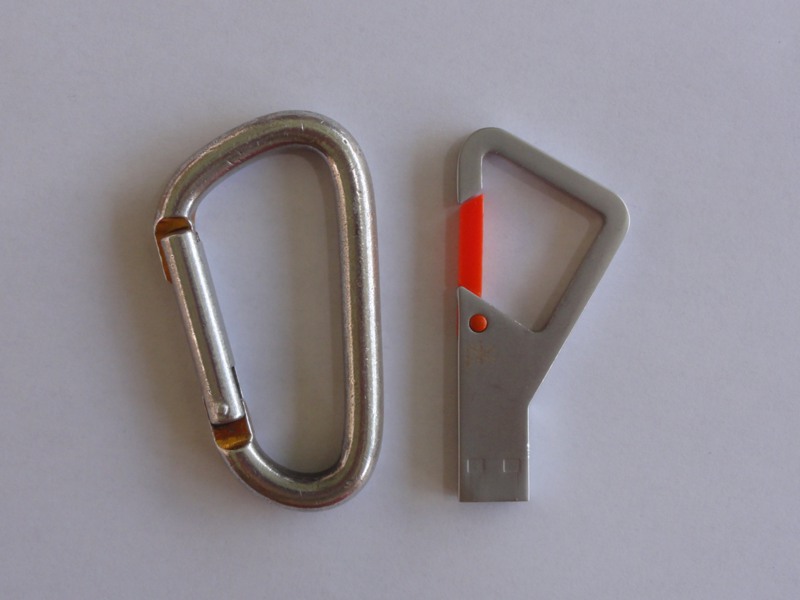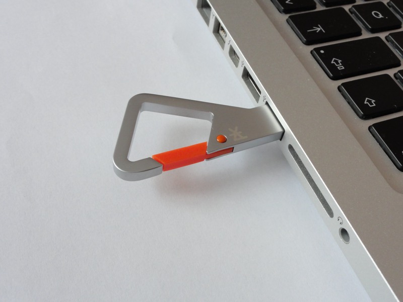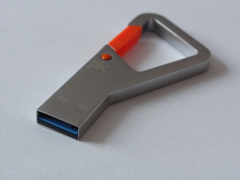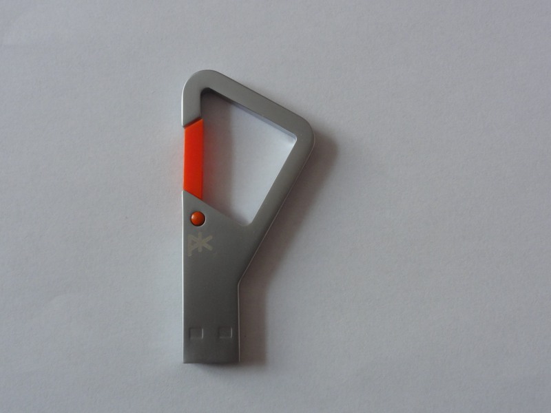 A první dojem? Luxus a rozčarování zároveň. 32GB disk lze dnes pořídit za relativně menší peníz, než je 789 Kč, a to i při použití stejných (nebo alespoň velice podobných) materiálů. PKparis K’lip však oproti běžným flash diskům přidává něco navíc. Použitý materiál na celém těle je brilantně provedená záležitost, protože se jedná o jeden kus kovu. Nikde není žádné překrytí, a díky své celistvosti karabina unese zátěž až 200 kilogramů.
