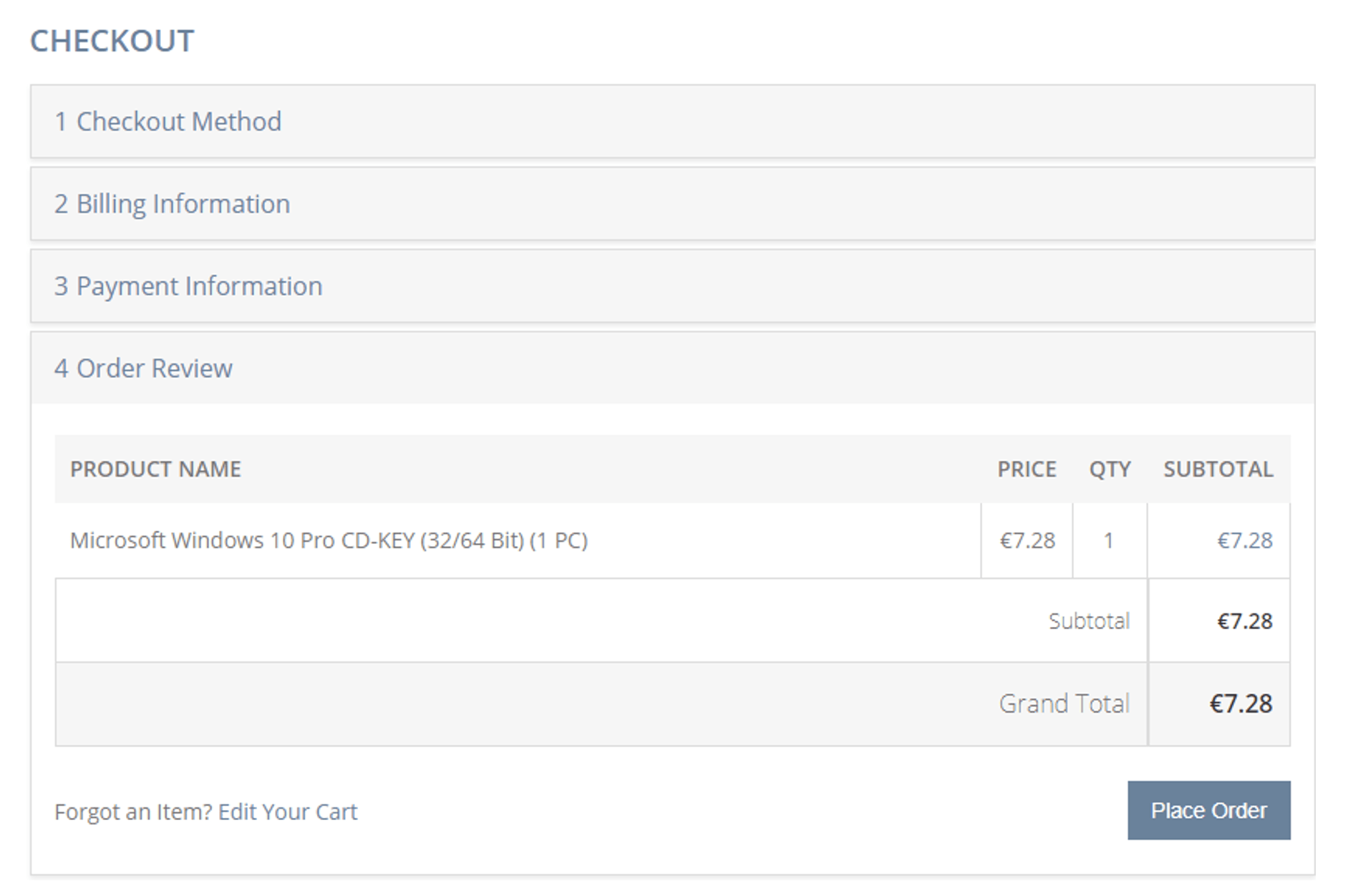 - Na obrazovce pokladny přejděte na „Order Review“ a klikněte na „Place Order“.