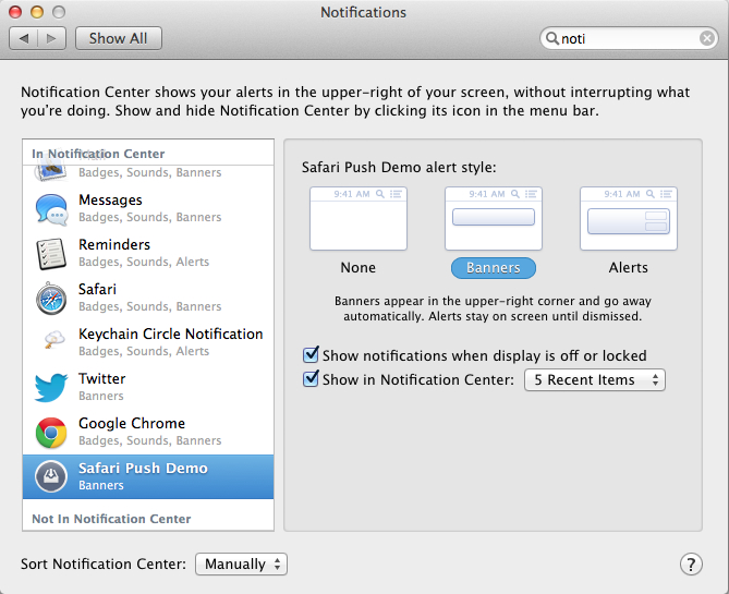 Apple v OS X 10.9 přichází s webovými notifikacemi a umožňuje webovým stránkám zasílat uživatelům Safari updaty z vybraných stránek, i když jejich prohlížeč zrovna není spuštěný.