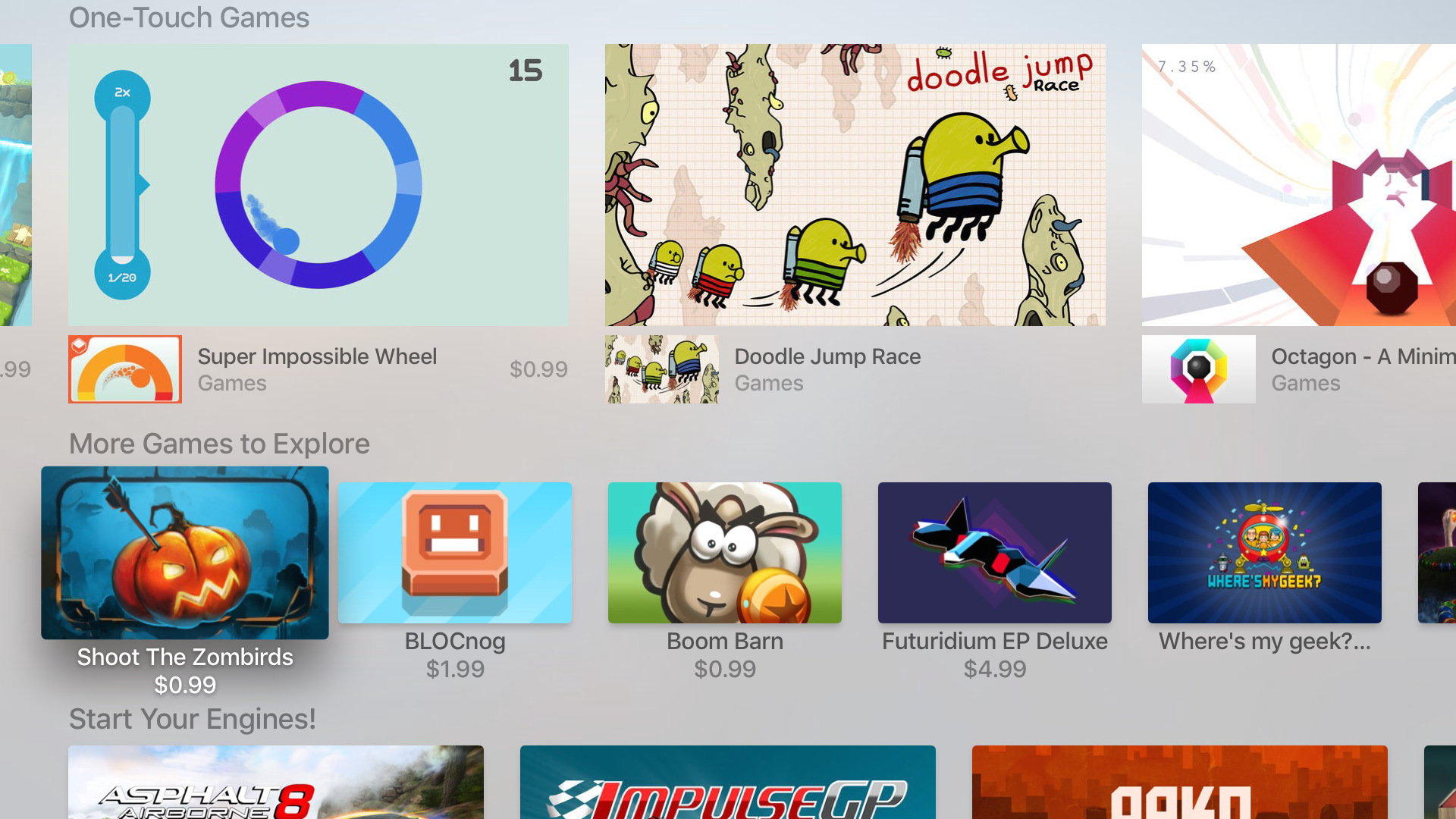 Hledejte bílé „áčko“ na modrém pozadí, to bude váš přítel a kamarád po dlouhou dobu. Bez App Storu to zkrátka nemá smysl. Společnost s nakousnutým jablkem nepodcenila oficiální datum uvedení mezi veřejnost a raději se pojistila rozdáváním DevKit verze. Sázka na to, že se vývojářská obec hladově vrhne na Apple TV, se jim vskutku vyplatila. Chvilku ještě potrvá, než si každý přijde na své, ale o dobrou tisícovku aplikací se můžete opřít už dnes. Od her přes trenéry jógy až po kuchařky pro začátečníky.