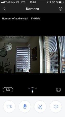 Až je vše nastaveno, tak vidíte živý přenos obrazu z kamery. Pomocí táhnutí prstu do požadované strany dáte kamerce „příkaz“ k otočení, takže pokaždé uživatel vidí jiný úhel pohledu. Zajímavé je noční vidění, které je opravdu kvalitní a i v naprosté tmě vidíte vše dokonale. Kamera umí vysílat živý obraz do telefonu, ale pokud chcete uložení nějakého záznamu, je nutná koupě paměťové karty.