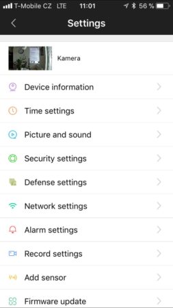 V nastavení si samozřejmě lze nastavit požadovanou kvalitu přenosu (SD, HD). Kameru také lze spárovat s dalším příslušenstvím, které naleznete v balení a z aplikace iEye můžete vše spravovat.