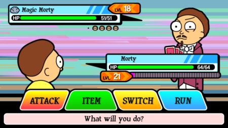 Vaším úkolem bude si posbírat několik dalších Mortyů, kteří vám pomohou s čím dál náročnějšími souboji. Najednou jich může děda Rick s sebou mít až pět, a jelikož si hra vzala za předlohu Pokémony, budete muset přemýšlet nad tím, jakého Mortyho si s sebou budete nosit a jakého používat. Každý Morty je totiž specifický nejen svými útoky a kouzly, ale také profesí. Existuje zde systém kámen-nůžky-papír. Například papírový Morty má výhodu nad kamenným Mortym a nevýhodu proti Mortymu s nůžkami.