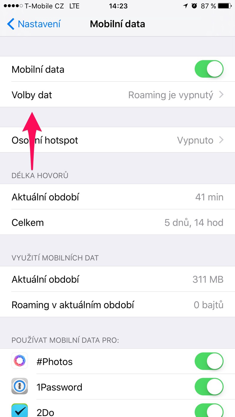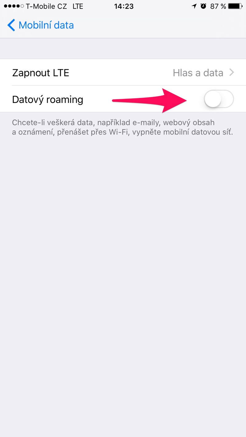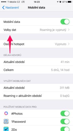 Nechcete-li v zahraničí přijímat data, a platit tak za datový roaming, vypněte si jej. Jděte do Nastavení –> Mobilní data –> Volby dat. Pokud chcete data v zahraničí využívat, ale nechcete, aby vám nenasytné aplikace zruinovaly váš účet, v záložce mobilních dat odškrtněte, kterým aplikacím chcete používání dat zakázat, a ty se již k internetu nepřipojí. Chcete-li roaming vypnout na své SIM kartě úplně, navštivte internetovou samoobsluhu svého operátora a v ní si roaming zrušte.