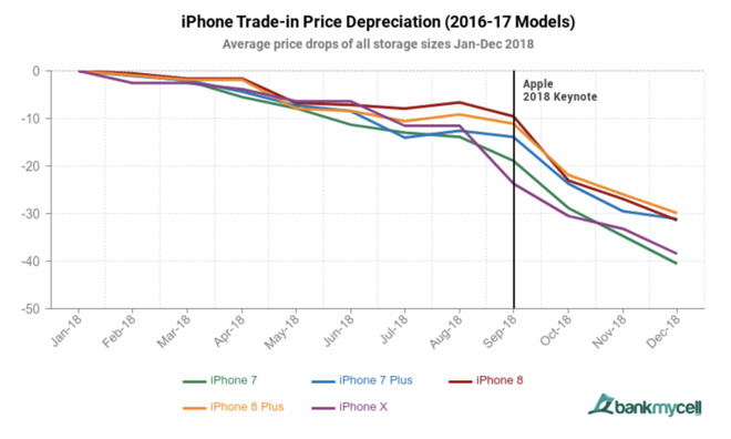 Podle statistiky, kterou vypracoval distributor Bank My Cell, se už po měsíci hodnota Samsungu S9 snížila o 10,73 %. Po 9 měsících klesla o skoro 60 %. Pokud by tak pořizovací hodnota činila kolem 20 000 Kč, tak po měsíci je 18 000 Kč a po 9 měsících už jen 8 000 Kč.