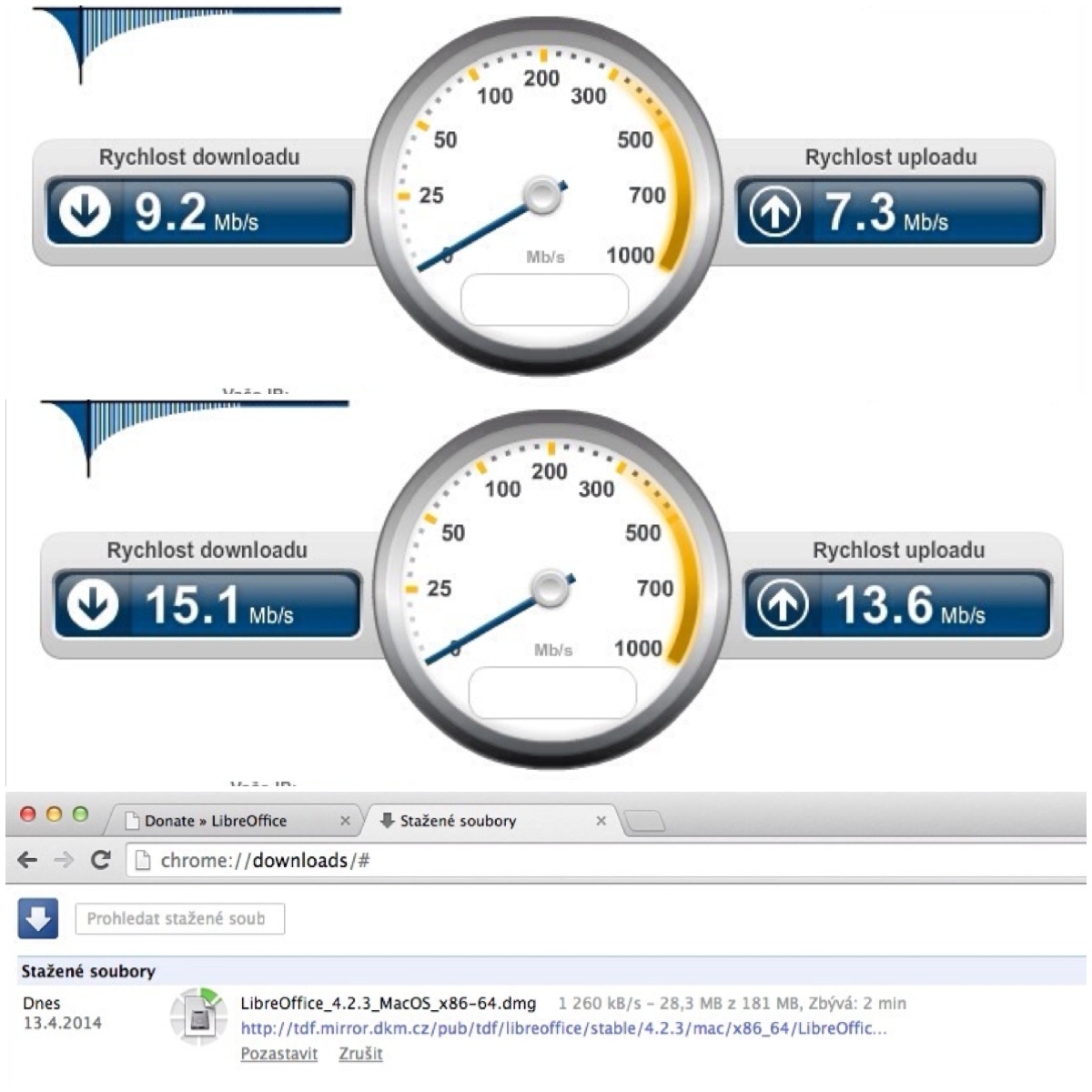 V posledním Plusminus jsem psal o nabídce internetového poskytovatele umístit na naši střechu svůj přístupový bod s internetem pro naši domácnost zdarma. Už tři dny surfuju na tomto připojení zdarma a je to o malinko lepší než před tím. Hlavně co se týká stahování, to je paráda, když můžete stahovat rychlostí kolem 1,5 MB/s. Upload je zhruba stejně rychlý a je to super, když se připojíte ke vzdálené ploše a nepociťujete žádnou zpožděnou reakci. Předtím jsem měl rychlost stahování zhruba 800 kB/s a upload 600 kB/s. Pro uživatele žijící ve městě není nic překvapivého na této rychlosti, maximálně to, že není nijak závratná. Jsem z malé vesnice o počtu obyvatel zhruba kolem 850 a pro mě to je opravdu zážitek, že i v tak malé vesnici dochází k zrychlování internetu. Jsem opravdu nadšený.