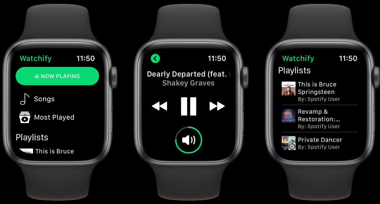 Aplikace Spotify byla původně spuštěna na watchOS již v roce 2018, dosud byla omezena pouze na ovládání přehrávání na jiných zařízení, na kterých je spuštěna plnohodnotná verze Spotify.