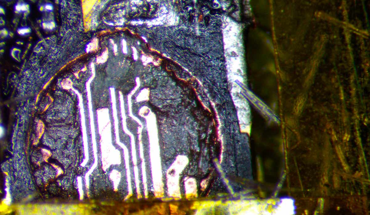 Poškození základní desky použitím dlouhého šroubku, který byl nesprávně zašroubován do krátkého závitu na základní desce iPhone.