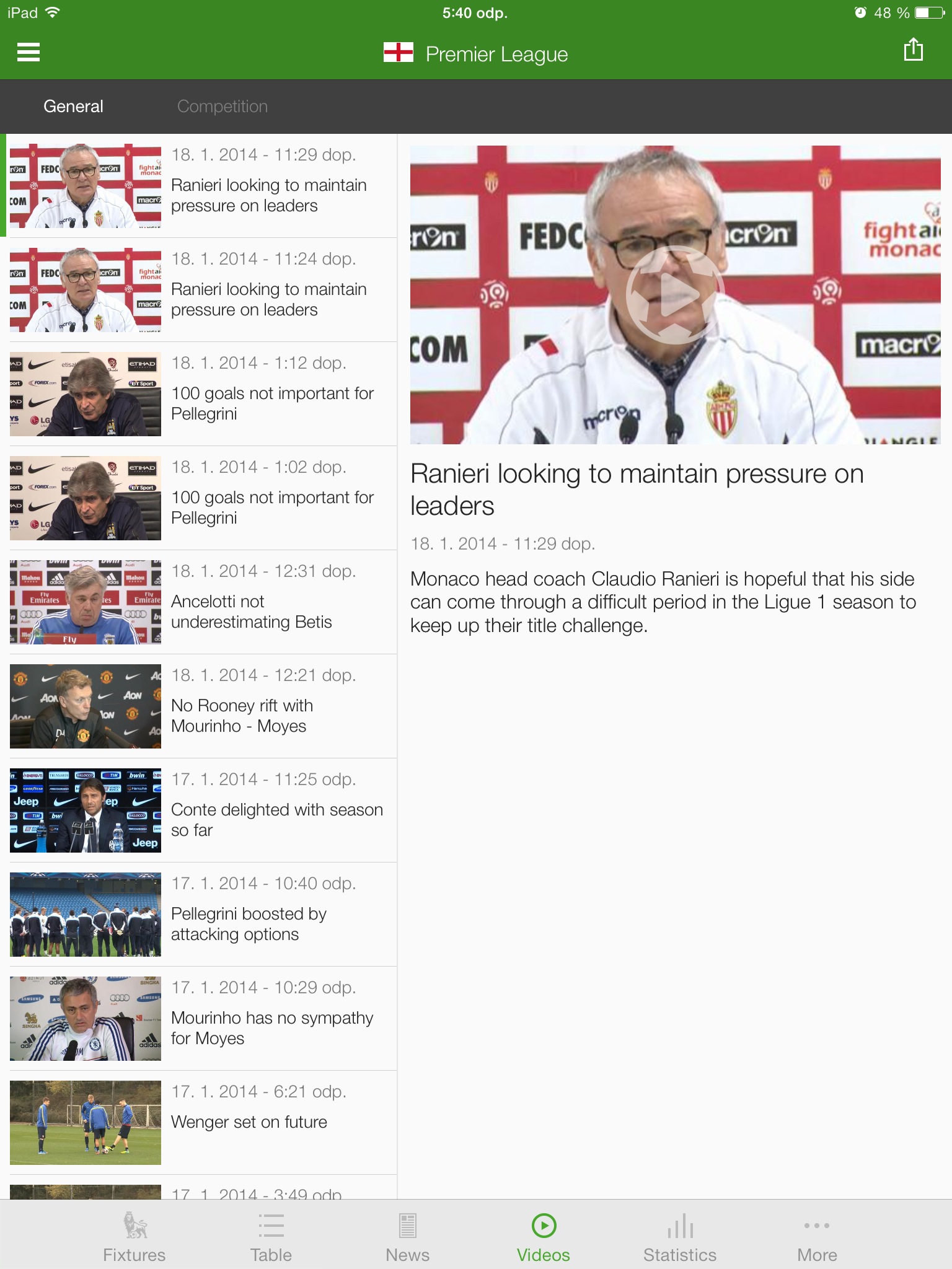 Pro fanoušky zahraničního fotbalu snad nepostradatelná aplikace, ve které se dozvíte veškeré informace nejen o jednotlivých zápasech, ale i o vašem oblíbeném klubu.01