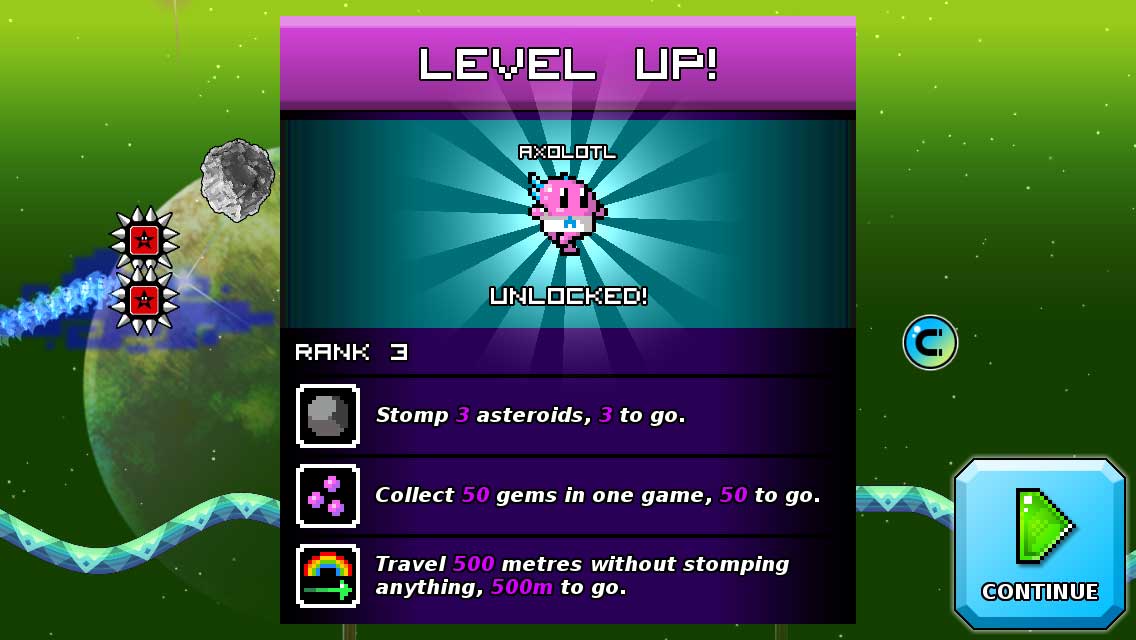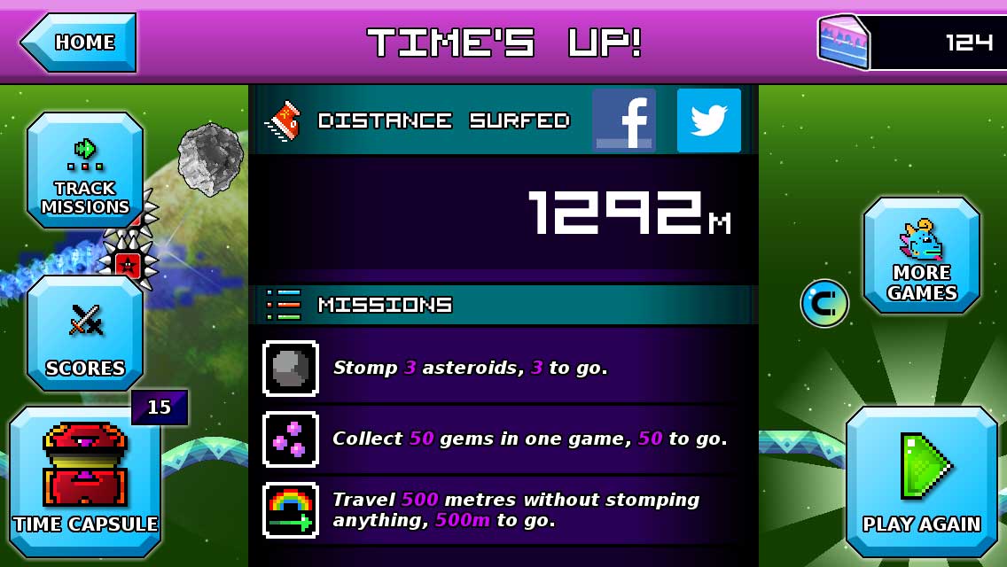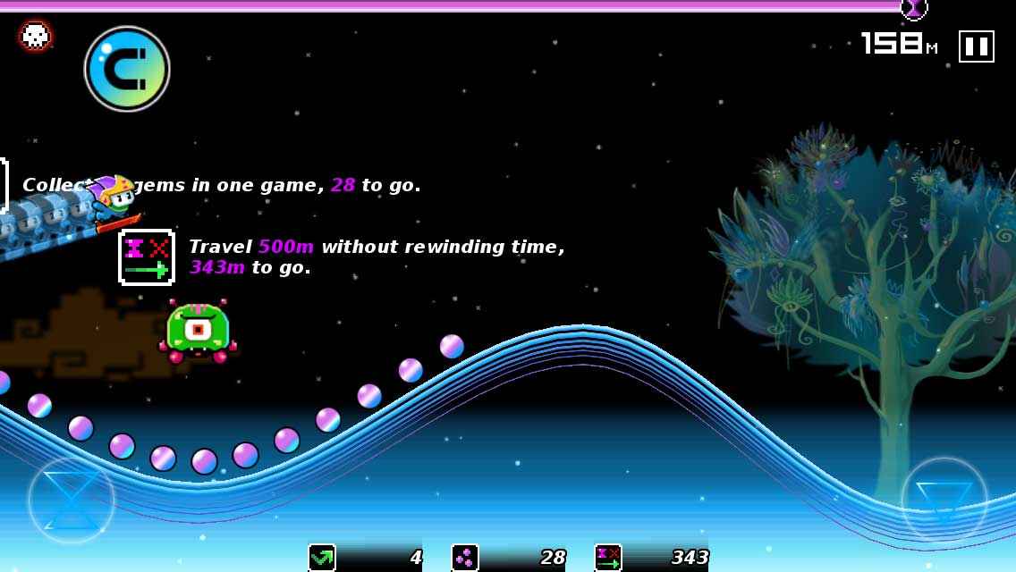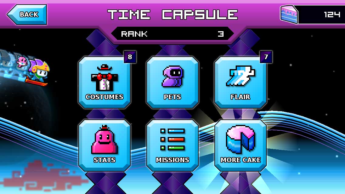 Sbíráním bublin cestou se vám rychleji obnoví možnost cestovat časem. Také občas narazíte na kusy dortů, za které si kupujete nové oblečky a podobné věci. Zároveň si též dejte pozor na mimozemšťany a meteority, které vás zpomalí. Pokud byste chtěli nový obleček hned, můžete si dokoupit pár dortů za skutečné peníze.