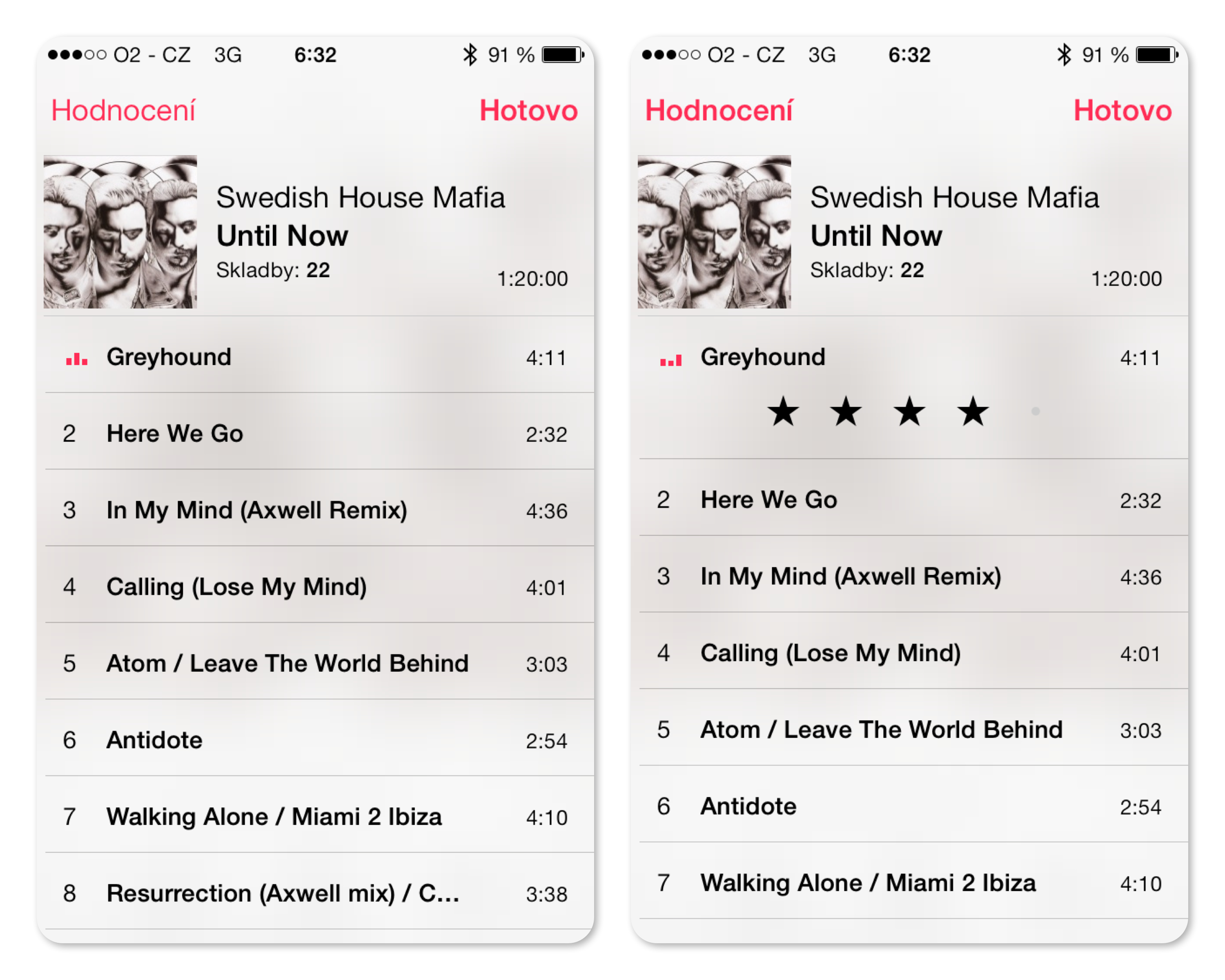 Jak v iOS 7 hodnotit skladby v aplikaci Hudba (tip)