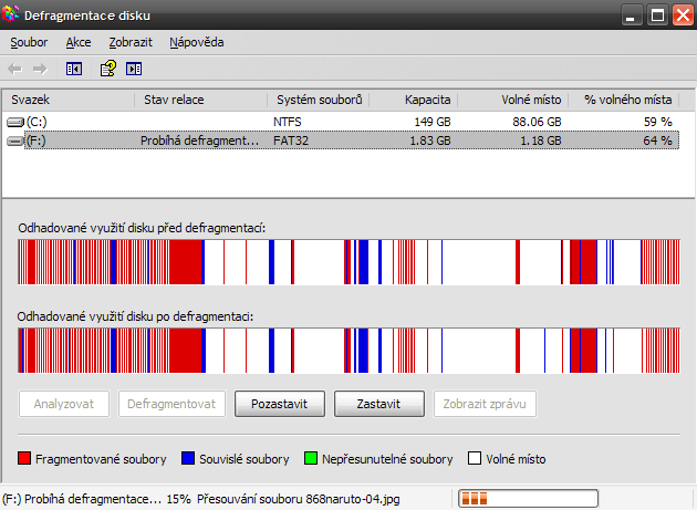 Princip zápisu na disk spočívá v tom, že se na něj zapisuje z jedné strany na druhou, je to takový šnek. Pokud něco smažete, a bylo to fyzicky zapsáno například uprostřed disku, data se nikam nepřeskupují, ale zůstane tam mezera. Ta se dá využít pro jiná data. Takže se za nějaký čas stane, že disk je zaplněný nerovnoměrně a má plno malých mezer. A tak při rozdělení disku se ta data musí natlačit více na sebe, aby v druhé části disku nic nezůstalo.