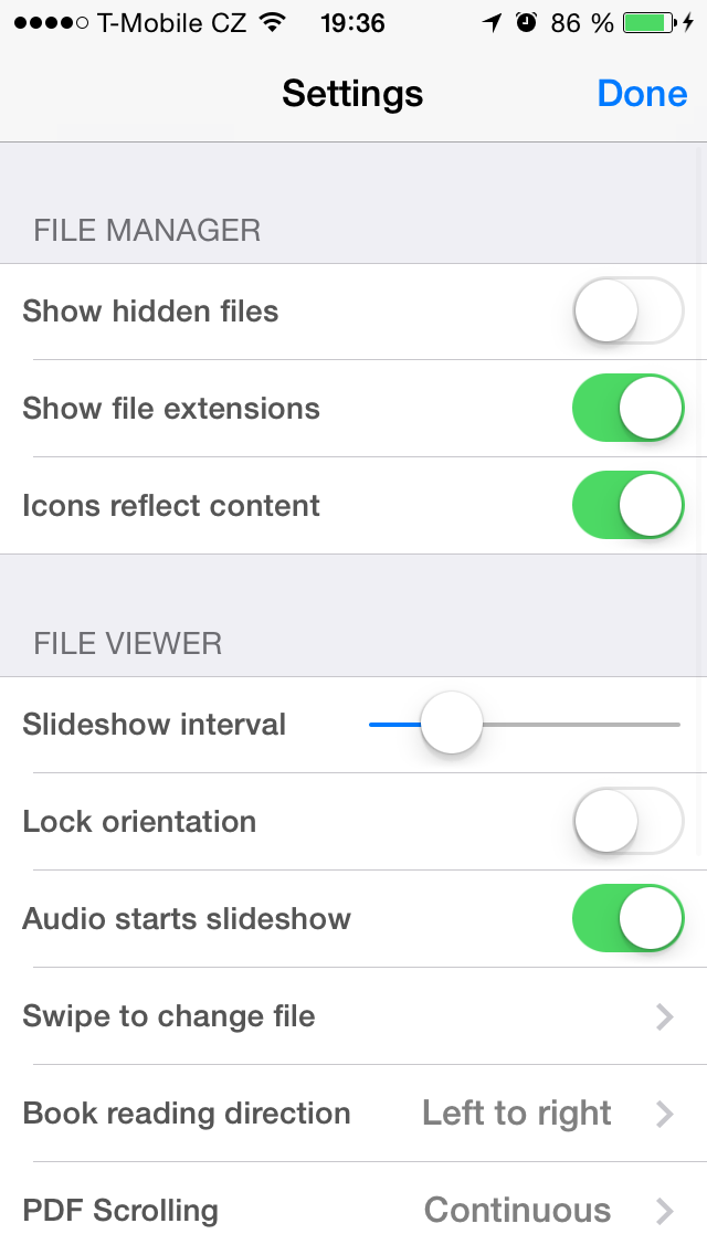 Zde je možné všechna data prohlížet i přehrávat a lze je i všemožnými způsoby sdílet. V rámci svého zařízení si data do aplikace můžete nahrávat kupříkladu i z emailů či Safari. Podporovány jsou také již řečené cloudové služby, jmenovitě Dropbox, Google Drive, OneDrive, Box nebo Evernote, avšak k tomu musíte mít prémiovou verzi aplikace.