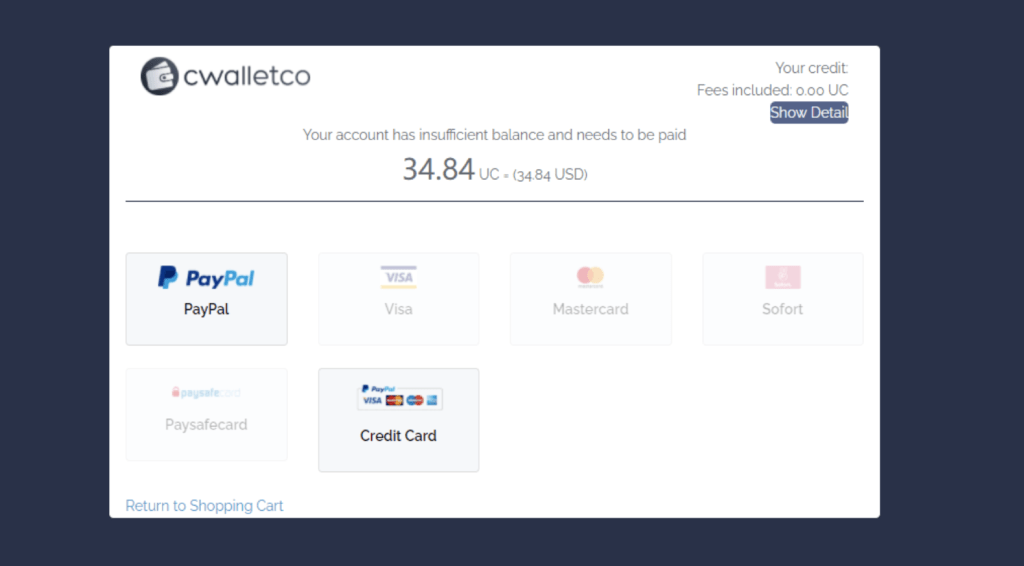 - Volbu Cwalletco můžete získat ve výchozím nastavení na kartě „Payment information“ – klikněte na pokračovat.