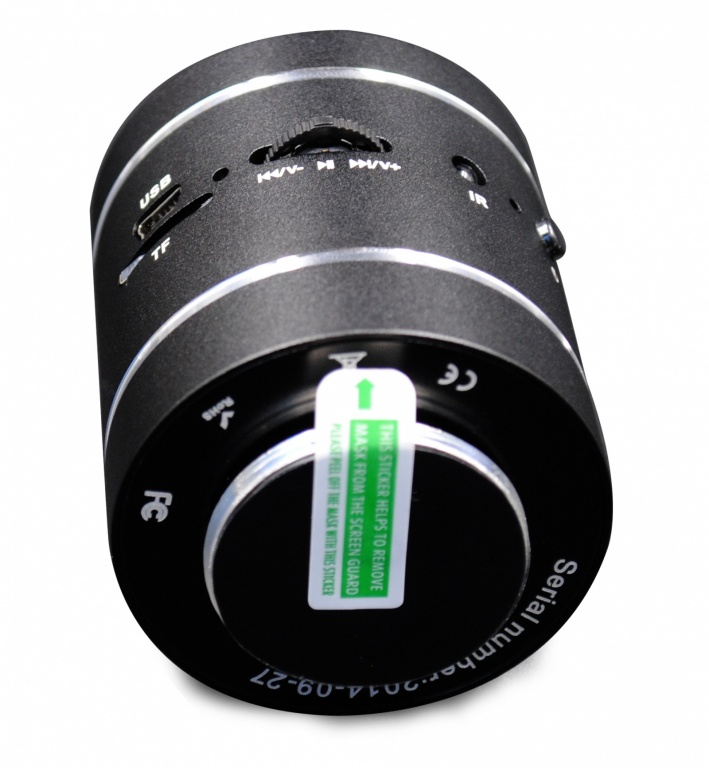 Samotný reproduktor je válcovitého tvaru a má rozměry 6,5 cm na výšku a 5,2 cm na šířku. Je celokovový a tedy poměrně těžký. Stylová černá barva kovu je doplněna o dva designové proužky ve stříbrné barvě. Reproduktor stojí na vystouplé magnetické vibrační plošce. Zespod je pogumovaná, aby nedošlo k poškrábání plochy, na kterou zařízení položíte. Jednu třetinu pláště tvoří ovládací prvky, kterými jsou zapínací tlačítko, barevná indikační dioda, dioda pro příjem signálu z dálkového ovládání (IR), multifunkční ovládací kolečko, barevná diodu pro zjištění stavu baterie, USB vstup a slot pro micro SD kartu.