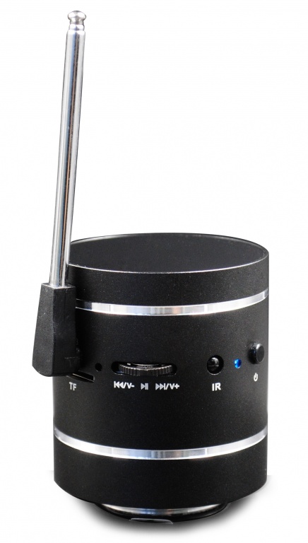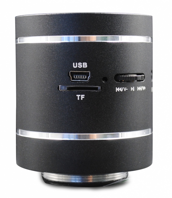 Ovládání reproduktoru je řešeno pomocí několika tlačítek. Zapnutí reproduktoru docílíte přibližně třívteřinovým podržením ON/OFF tlačítka. Rozsvítí se modrá dioda indikující aktivní Bluetooth a zařízení ihned vyhledává další zařízení pro spárování (to zajistíte přes své mobilní zařízení v nastavení v sekci Bluetooth). Pokud však zamýšlíte poslech rádia, stačí zamáčknou dlouhým stiskem ovládací kolečko na střed. A pokud se chystáte poslechnout si obsah vaší micro SD karty, pak musíte kolečko zamáčknout dlouze na střed ještě jednou.