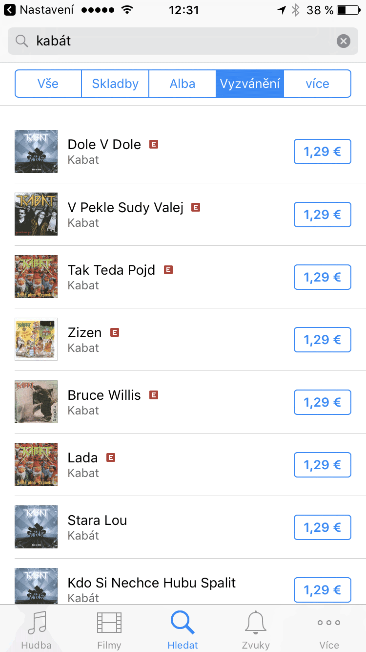 Nákup vyzvánění je bez námahy. Prostě jen v sekci zvuky v nastavení iOS klepnete na obchod. Otevře se iTunes Store, kde si vyhledáte oblíbenou část skladby, třeba od takových Kabátů, a postupujete úplně stejně, jako když kupujete aplikaci v App Storu. Vybraná varianta se stáhne, a vám už jen stačí si ji navolit z nabídky. K realizaci nákupu musíte samozřejmě mít u svého Apple ID přiřazenou aktivní platební kartu nebo být součástí rodinného sdílení.