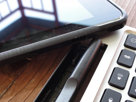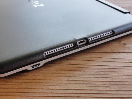 Díl s klávesnicí obsahuje pouze konektor pro microUSB kabel, kterým samotnou klávesnici dobíjíte. Ta na jedno nabití vydrží stejně jako ZAGG Bluetooth klávesnice Rugged Book až neuvěřitelné dva roky. Na klávese Ctrl je zobrazen ukazatel nabití klávesnice, kdy tři zelené čárky značí nabití v rozpětí 100 až 50 %, tři žluté čárky pak 49 až 25 % a tři červené signalizují méně než 25 % nabití baterie. Pokud ty začnou každých pět minut blikat, je už opravdu třeba dát klávesnici nabíjet, jinak se vám brzy vypne.