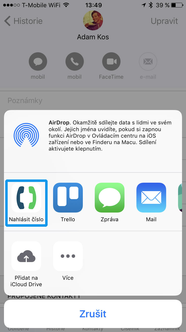 Pokud budete chtít v současnosti nahlásit a přidat do databáze čísel neznámý kontakt, můžete tak učinit přímo z aplikace Telefon. U daného telefonního čísla klepnete na další informace a následně na Sdílet kontakt. Zde, pokud máte nainstalovanou nejaktuálnější verzi aplikace Zvednout to?, objevíte novou položku s názvem Nahlásit číslo.